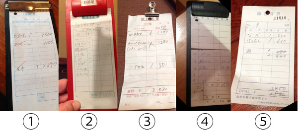 5種類のお会計票の画像をゲットしました。
